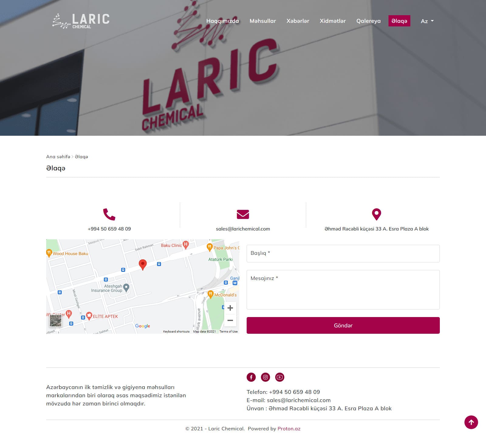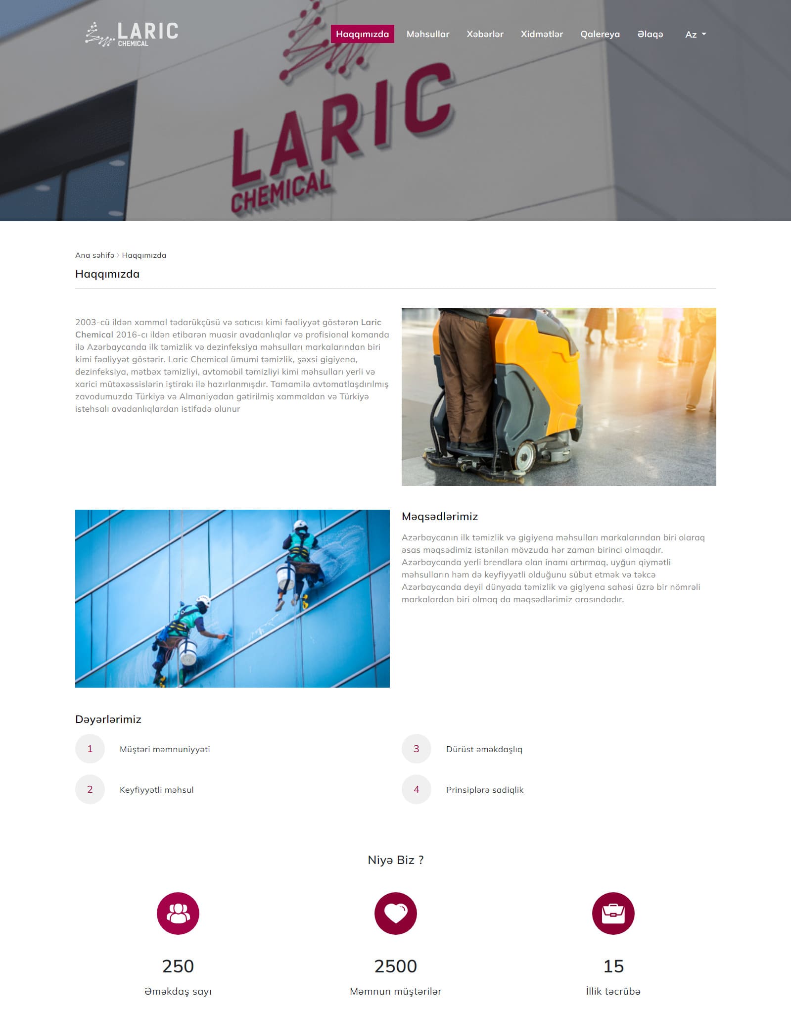Laric Chemical, which has been a supplier and seller of raw materials since 2003, has been one of the first brands of cleaning and disinfection products in Azerbaijan since 2016 with modern equipment and a professional team.